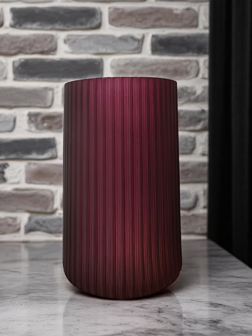 Bold and sophisticated, the Deep Purple Ribbed Vase makes a strike statement. Its rich hue and vertical ribbed texture add depth and elegance, making it a perfect match for vibrant or contrasting floral arrangement.