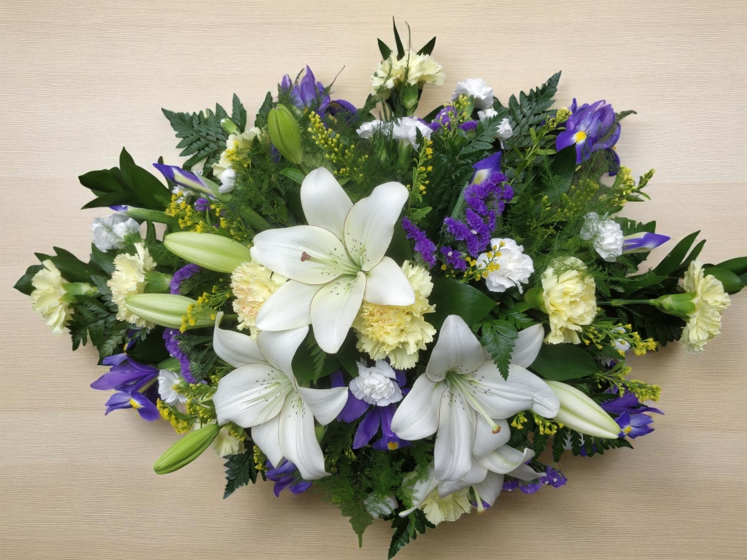 The Lemon Whisper Funeral Spray is a gentle and uplifting tribute, combining soft lemon and purple blooms with elegant white lilies. This graceful arrangement offers a beautiful balance of colour and serenity, symbolising peace, remembrance, and eternal love. Thoughtfully designed to convey heartfelt sympathy and respect.
