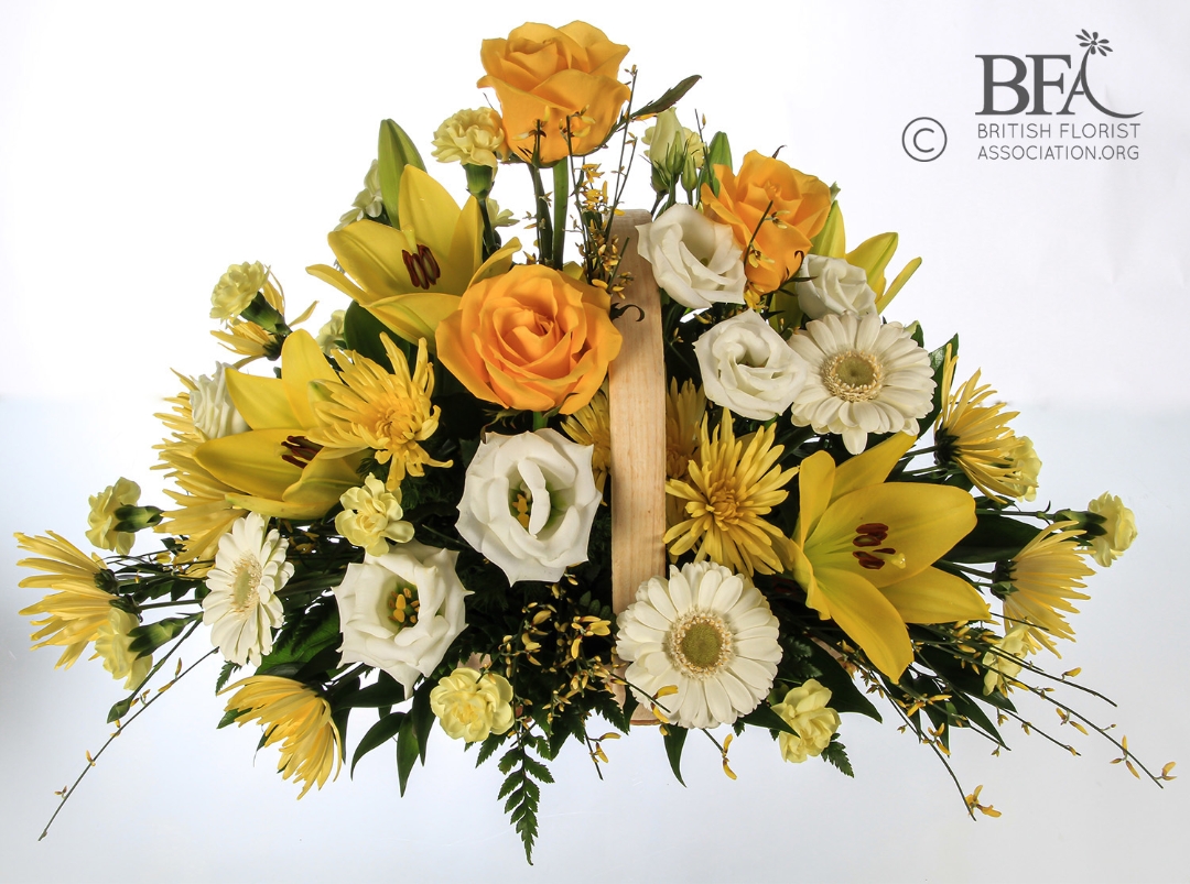 Radiant Remembrance is a beautiful funeral basket featuring yellow and white flowers, thoughtfully arranged to create a gentle and uplifting tribute. Perfect for expressing love, sympathy, and heartfelt memories of a cherished life. 🌼🤍
