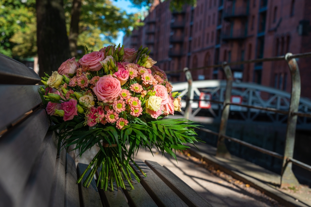 A beautifully balanced hand-tied bouquet featuring salmon-coloured chrysanthemums, paired with pink roses and white-green lisianthus. Soft, elegant tones and gentle textures create a fresh and graceful arrangement, perfect for gifting or brightening any space.